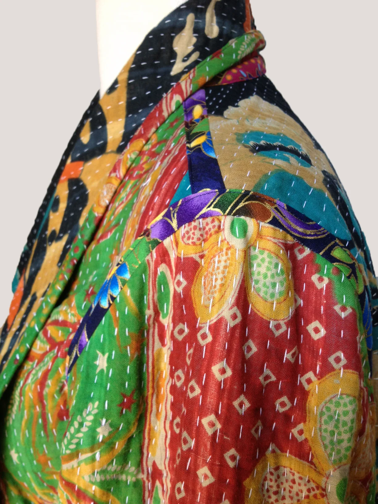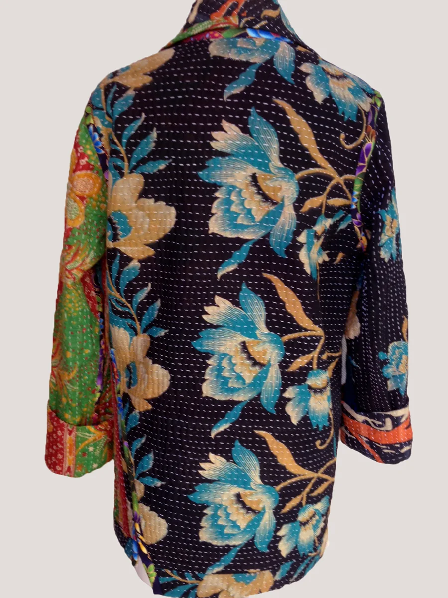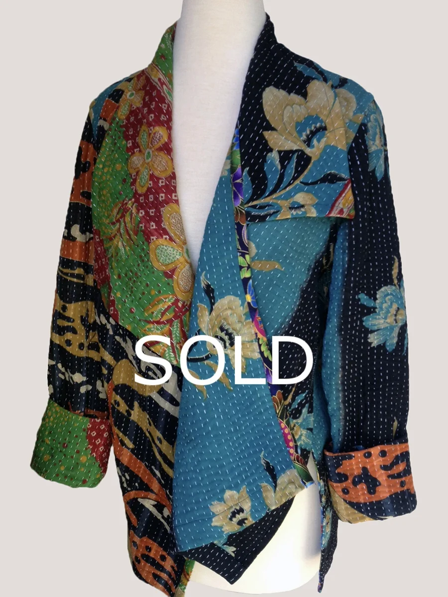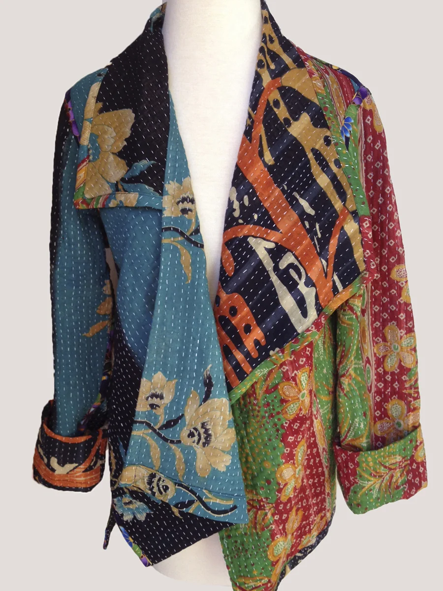 Asymmetrical, One of a Kind, Reversible Jacket #1 100% Cotton Kantha Stitched Vintage Textile