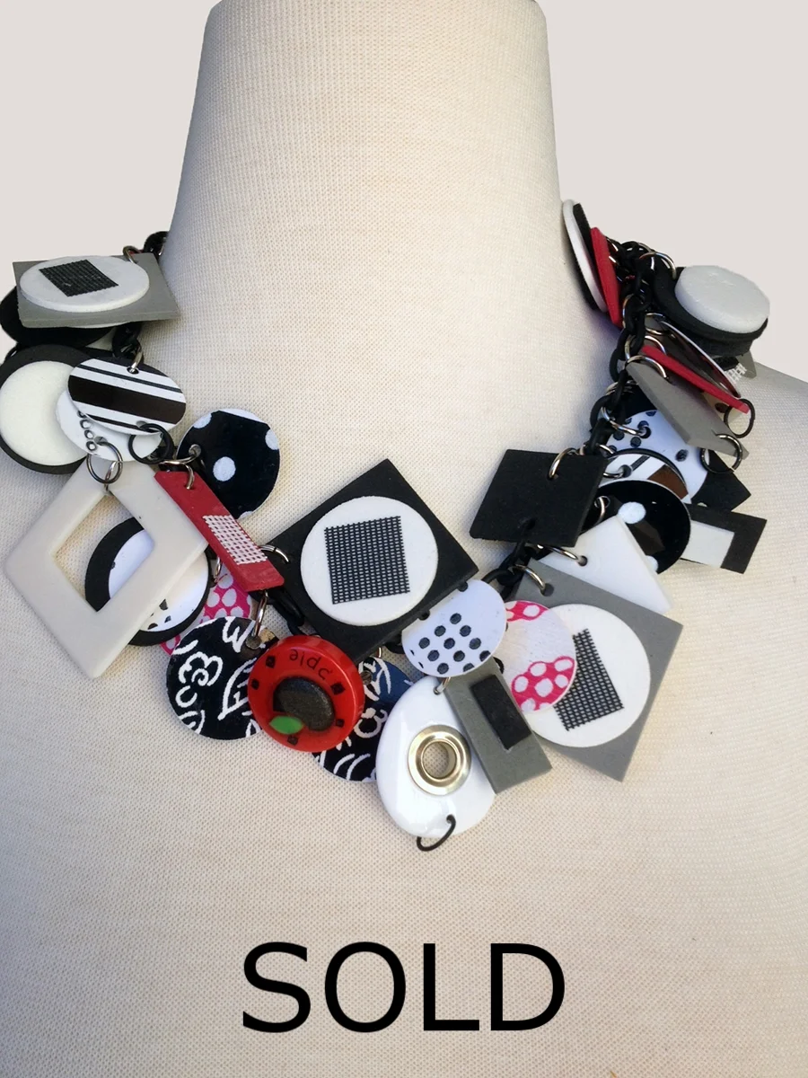 Necklace #4Chic Fashion Forward Recycled JewelryRubber, Plastic Shapes and Discs, Light Weight, One of a Kind