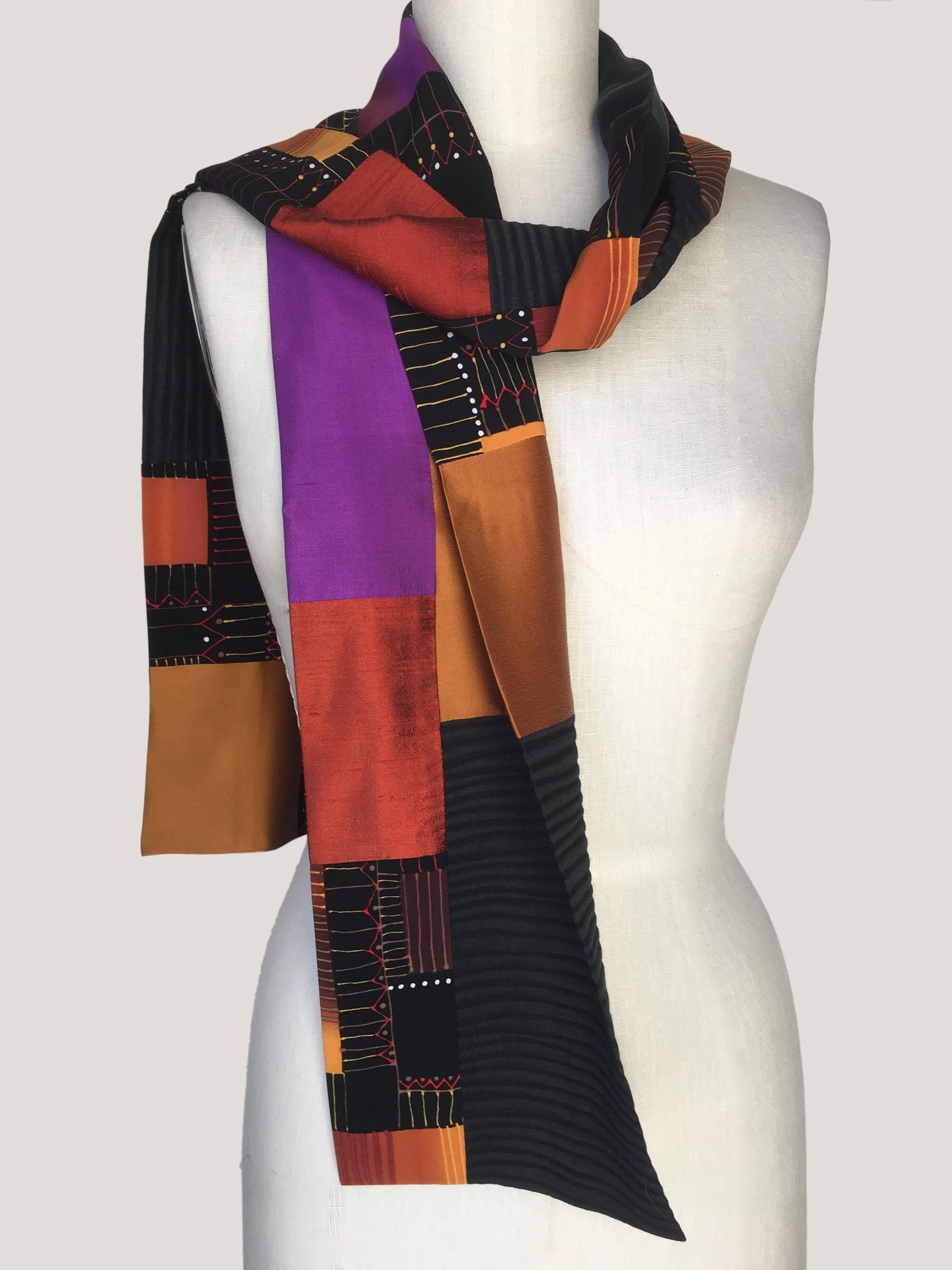 SOLDGeometric Scarf #5Thai Silk Doupioni - Sueded Silk Charmeuse - Polyester/Rayon - Ribbed Silk/Linen7 3/4” x 70 1/2”$250.00