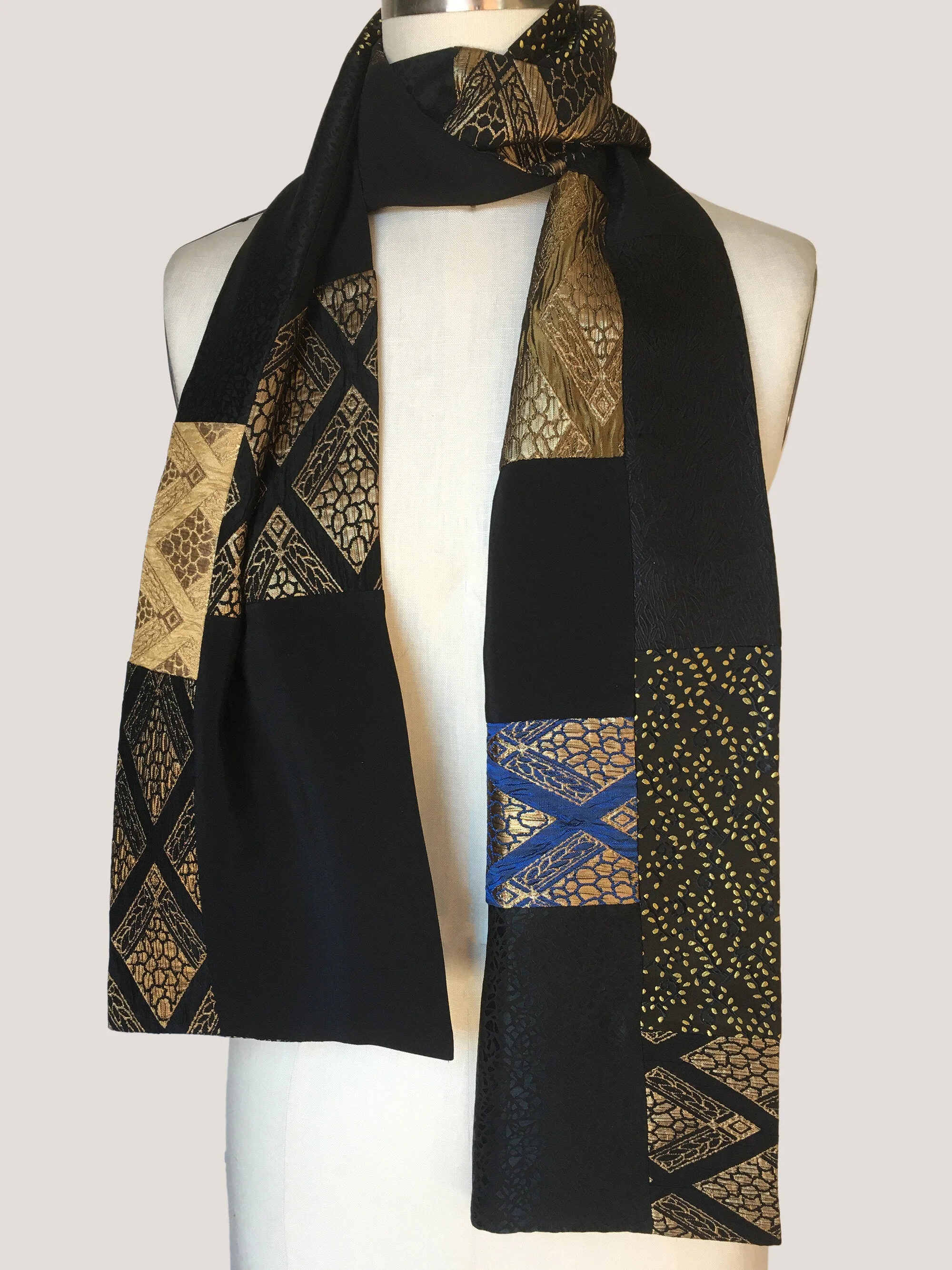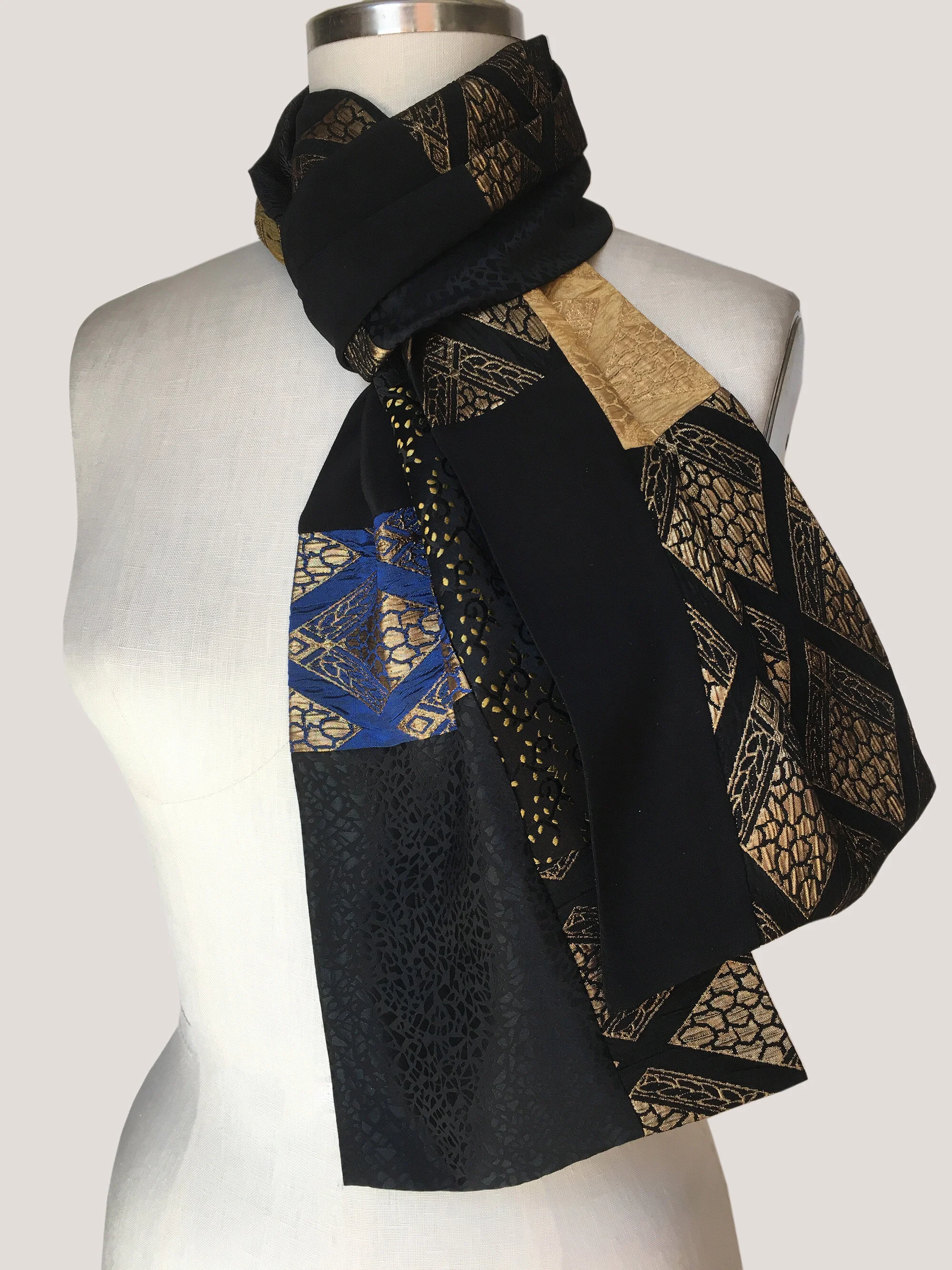 Geometric Scarf #7Heavy Silk Crepe - Silk Brocade - Diamond Matlasse 7 3/4 x 70 1/2”$295.00